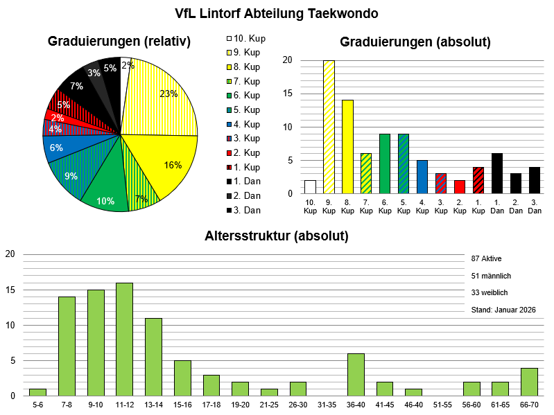 Zur Zeit zählt die Abteilung 87 aktive Mitglieder/innen (siehe Statistik vom Januar 2026).