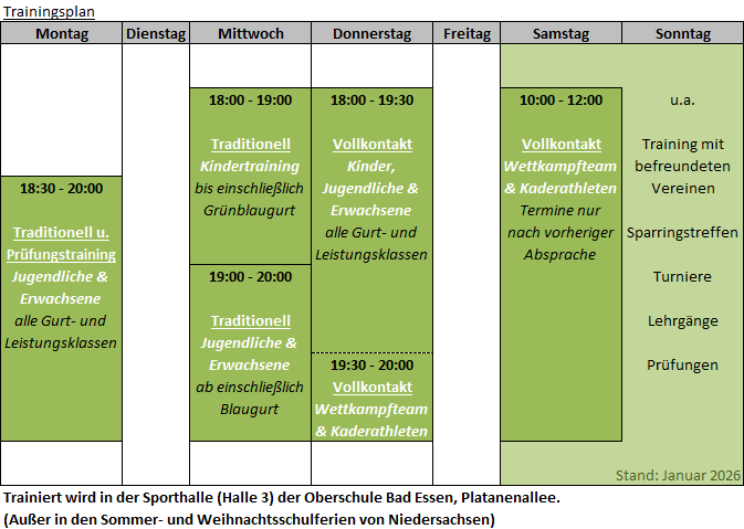 In den Sommer- und Weihnachtsferien von Niedersachsen findet kein Training statt.